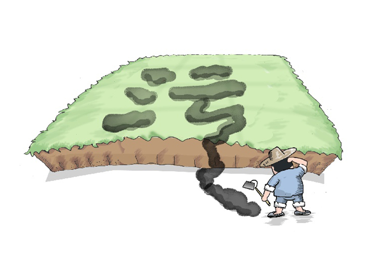 →發(fā)現周圍土壤板結、散發(fā)異味、顏色變化;懷疑土壤被污染。