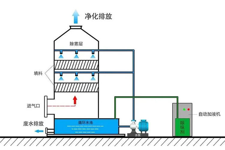 噴淋塔又稱為洗滌塔、水洗塔,對(duì)于各種腐蝕性氣體凈化處理效果明顯,適宜用于處理酸堿廢氣。